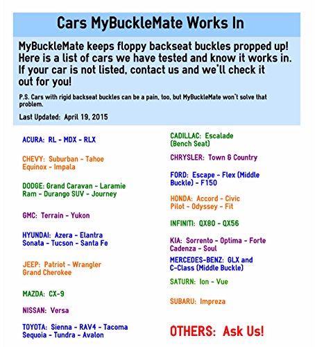 Works in most Cars, Minivans, SUVs and Trucks with Floppy Buckles: See List of Compatible Vehicles