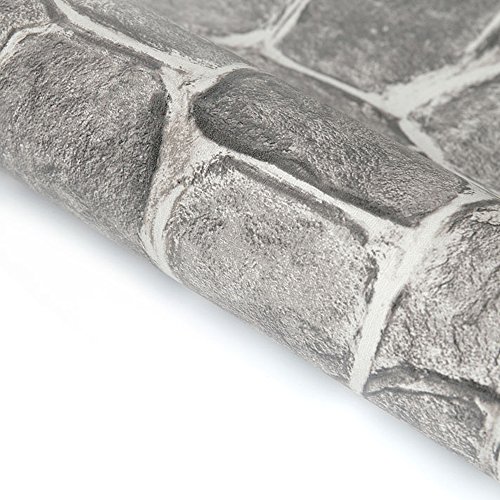 SimpleLife4U Grey Rock Stone Decorative Contact Paper Vinyl Shelf Liner Living Room Wall Sticker 17.7inch by 9.8 Feet
