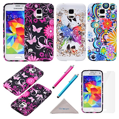S5 Case, Wisdompro® 3 Pack Bundle of Color and Graphic Soft TPU Gel Protective Case Covers for Samsung Galaxy S V / S5 (Butterfly Flower Pattern)