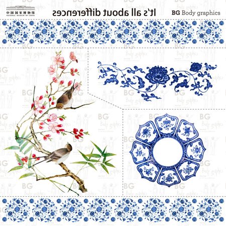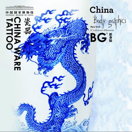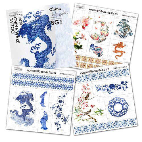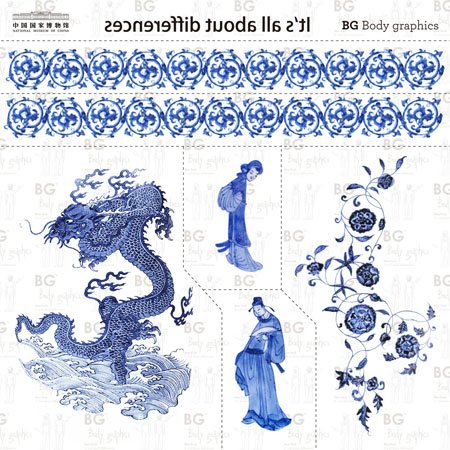 Bg Body Graphics Temporary Tattoo Blue & White Porcelain of Chnmuseum Series