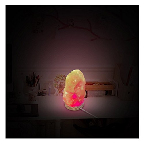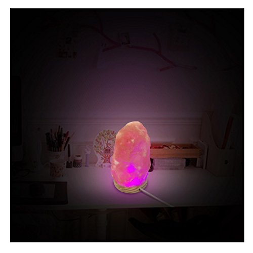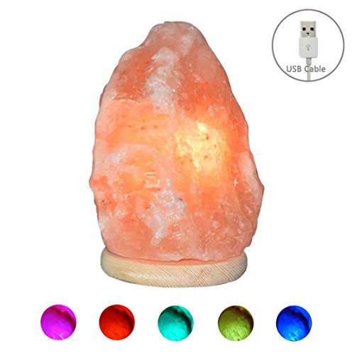 ESOW USB Salt Lamp with White Wooden Base Multi Color Changing Small Air Purifier about 5 Inches 1.5 lbs No Installation Required Great Decor For Office Home Hotel Yoga, Relaxing