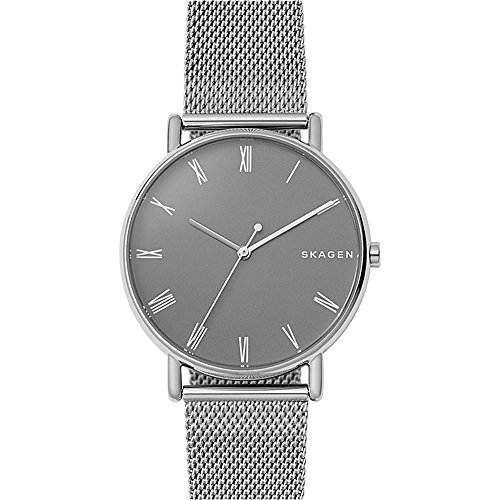 -. Binding : Watch -. Brand : Skagen -. Department : mens -. Feature : Silvertone metal 40mm Case width 30mm Band width Roman numeral indexes Three hand movement Water resistant up to 5 ATM Manufacturer's 2 year warranty / Imported -. Label : Skagen -. Manufacturer : Skagen -. ProductGroup : Watch -. ProductTypeName : WATCH -. Publisher : Skagen -. Studio : Skagen -. Title : Skagen Men's Skagen Signatur Mesh Watch