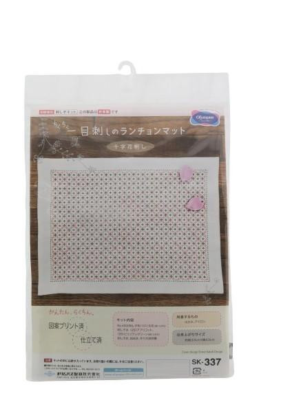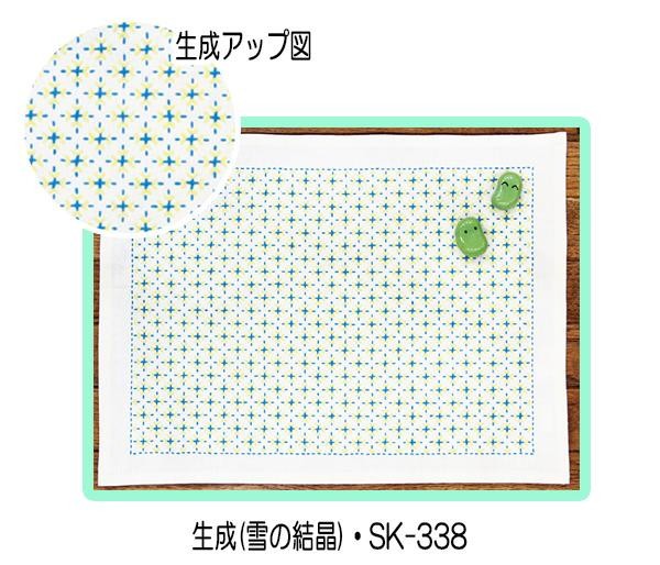 | 「一目刺し」とは、刺し子の技法のひとつで、一定の針目で縦、横、斜めと同じ方向を順に刺していく技法です。図案は布にプリント済みなので、初心者の方もお楽しみいただけます。 |