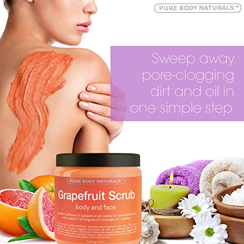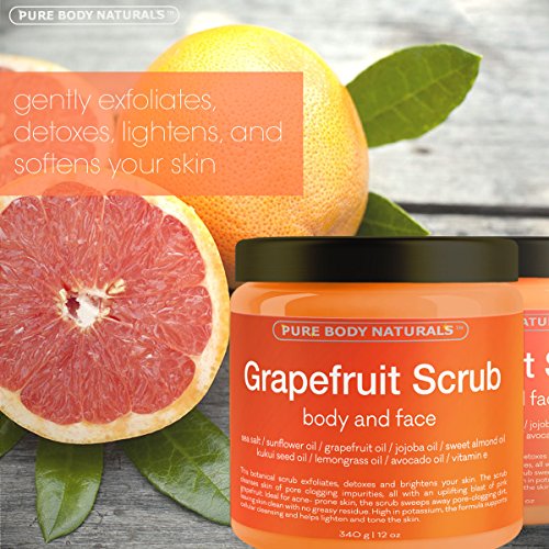 The Pink Grapefruit Scrub by Pure Body Naturals makes maintaining healthy skin easy and luxurious! Suffering from acne or breakouts? Our blend features potent ingredients like Jojoba Oil to cleanse pores and Sea Salt for a gentle exfoliation. Together they sweep away the dirt and dead cells that can buildup and cause pimples.