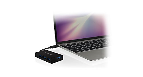 IOGEAR's HUB-C + - USB-C to 4-port USB-A Hub plugs into your laptop's USB 3.1 Type-C port and connects up to four USB 3.0 devices. Plug the adapter into the USB Type-C port of your laptop to convert it into four USB-A ports. Now you're ready to connect devices like a hard drive, flash drive, camera, or an USB cable for syncing and charging your smartphone or tablet. Transfer pictures, videos and music from existing USB accessories to your new Type-C laptop at blazing fast speeds. It also comes with its own power adapter so that you can connect and power all your USB devices without a worry. The super compact and lightweight hub easily fits into any laptop case, briefcase or backpack making it convenient to take with you on-the-go. USB Type-C is the latest universal standard in connectivity. Compared to earlier generations of USB connectors, USB-C has a slim profile connector to support ultra-thin laptops and tablets. Although USB-C has a low-profile design, it packs a big punch when it comes to speed and power, boasting data transmission speeds of up to 10Gbps and power transmission of up to 100W. And best of all, it's reversible to allow hassle-free connecting. The new standard fixes the age-old problem of connecting your USB in the wrong way, eliminating the frustration of fumbling with the USB plug when connecting it to a computer. If you've purchased a 2015 Chromebook [2] or MacBook, then you know that they feature USB-C technology. IOGEAR's HUB-C allows you to stay connected to your current USB 3.0 and USB 2.0 devices without the high cost of purchasing new peripheral devices. The Hub consists of a USB-C connector that splits into multiple USB-A ports so that you can charge your phone, output video, transfer data, and power your laptop simultaneously - consider it consolidation at its finest. 10Gbps data speeds are dependent upon the cable specification.Feature
