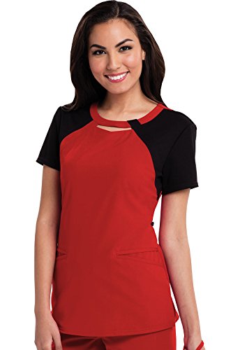 Careisma By Sofia Vergara Women's Audrey Cutout Neck Colorblock Solid Scrub Top