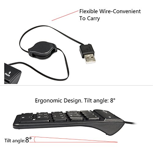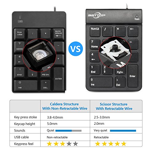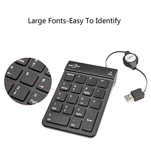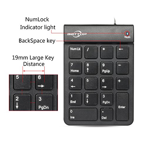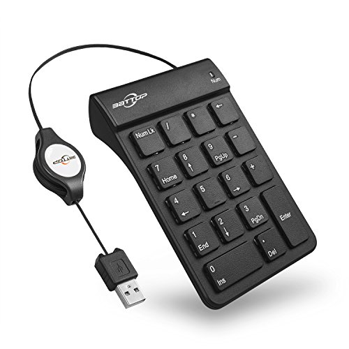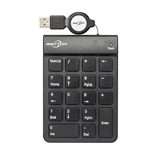 BATTOP USB Numeric Keypad with Retractable Wire 18 Keys for Notebook Laptop (Black)