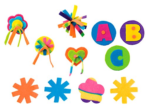 Comes with (42) 9-Inch fleece squares in 7 colors, lots of fleece shapes and fringe, ABC letter template and super easy instructions