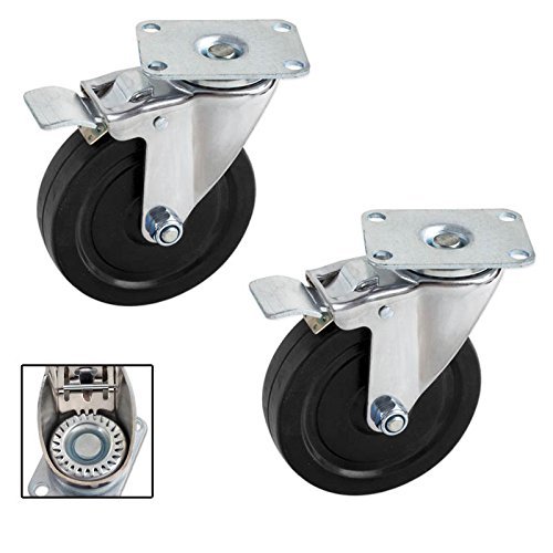 Pair Heavy-Duty 5 in. Swivel Casters with Double-Lock Brake - 600 LB for the Set of Two
