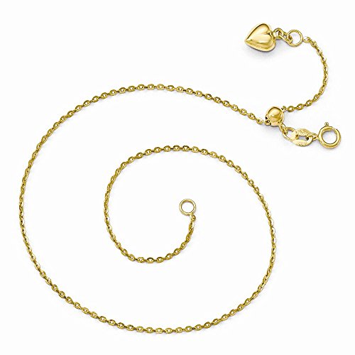 -. Title : Leslie's 14k Polished Dangle Heart Adjustable Anklet 11 Inches