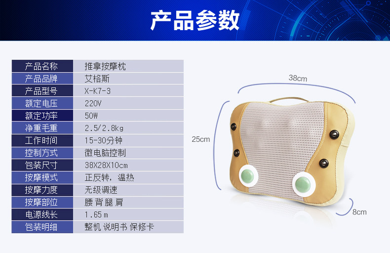 家用电动颈椎按摩枕器材机办公室颈部保健腰部背部腰椎仪靠垫枕头