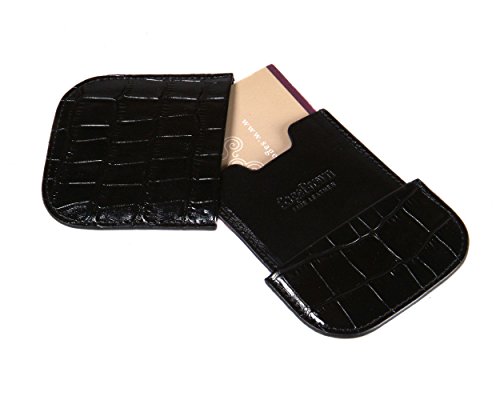Studio : SageBrown Publisher : SageBrown Binding : Apparel Product Description Handmade from fine calf leather with a fine grain or croc skin effect these smart 2 piece business card holders are an impressive way to introduce yourself to your client. The two sections simple pull apart to reveal your business cards. It is sturdy and slim and fits discreetly into any pocket or bag and also makes an ideal Corporate gift. 0