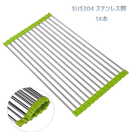 -. Feature : サイズ:長さ42cmx横22.5cmx厚さ1cm(14本)280g / 素材:本体は錆びにくく、丈夫なSUS304ステンレス製、両端は滑りにくいシリコン製です / シンクのスペースの拡大、野菜や果物や食器などを洗う時の台、布巾を干す水切り台、調理中のちょっとした作業スペースとしても便利です / 本体は食品用標準に達するSUS304ステンレスですから、衛生性が保証され、直接に食品を上に置くことはOK! / パイプの間に間隔が約1cm、小皿を立てて乾かすことができます