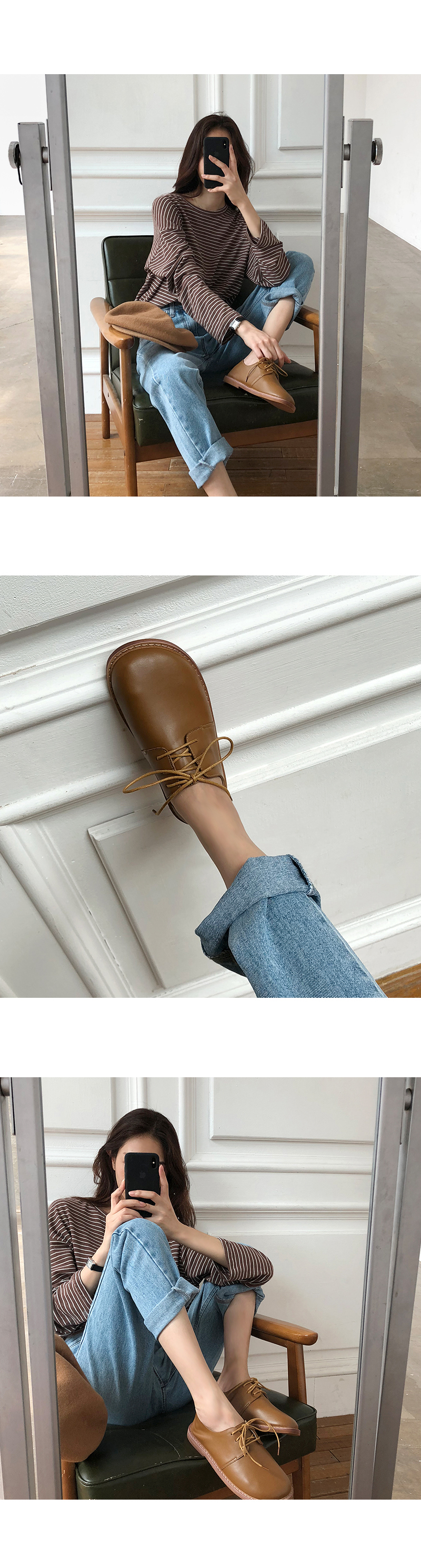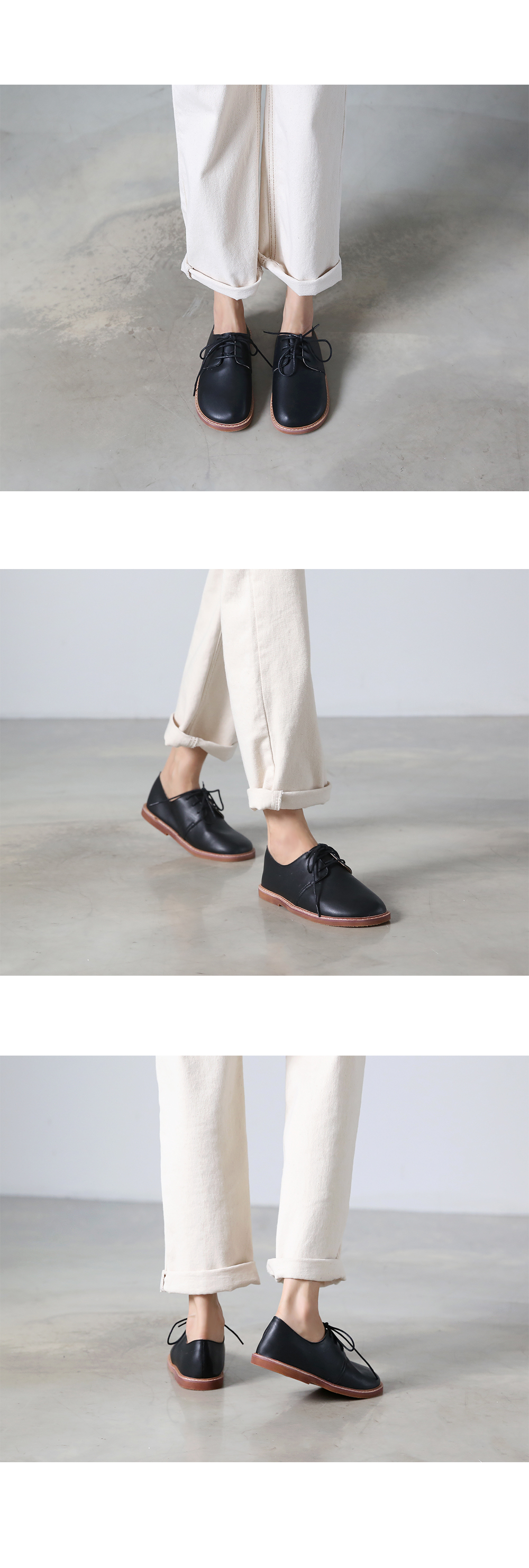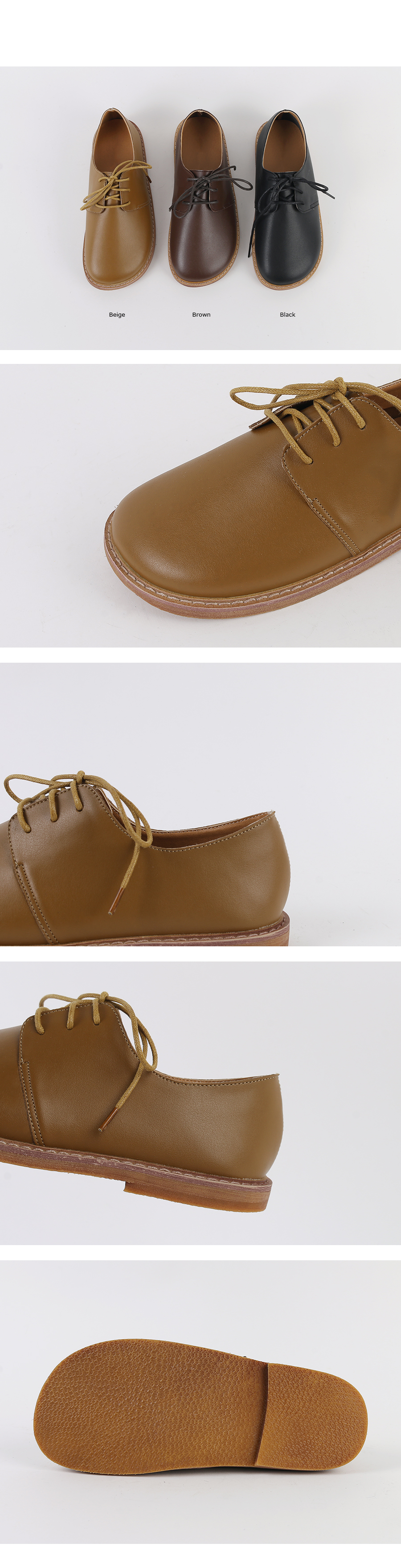 DETAILS - 소재 : 인조소가죽 - 컬러 : beige,brown,black - 피팅감 : 정사이즈 / 무게 : 보통인편 - 착화감 : 편해서 데일리 슈즈로 좋아요 - 모델피팅 : 235
