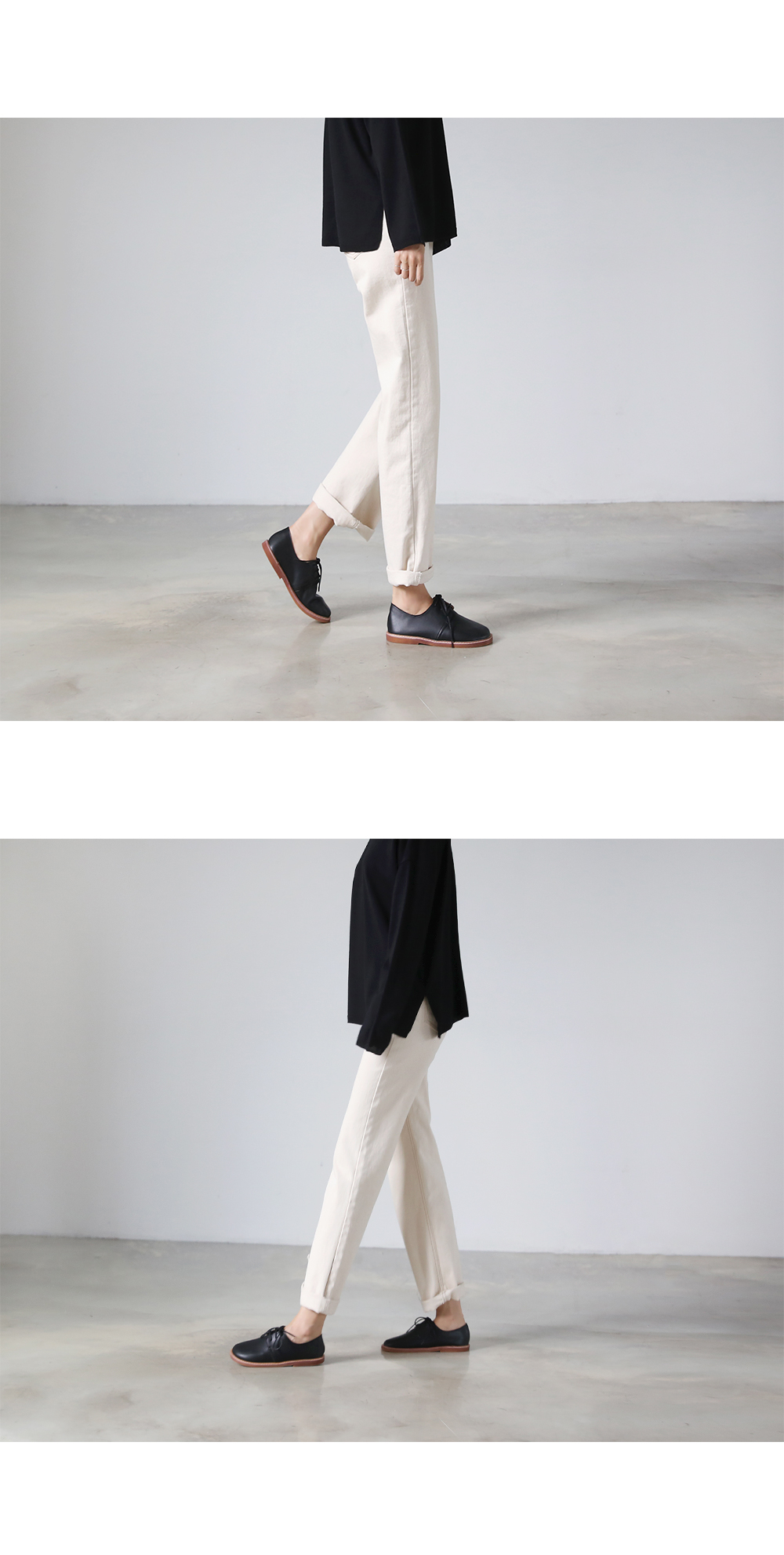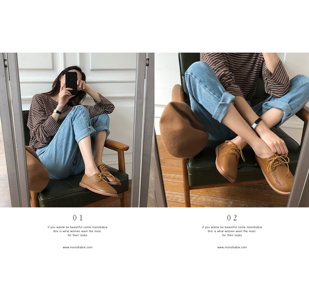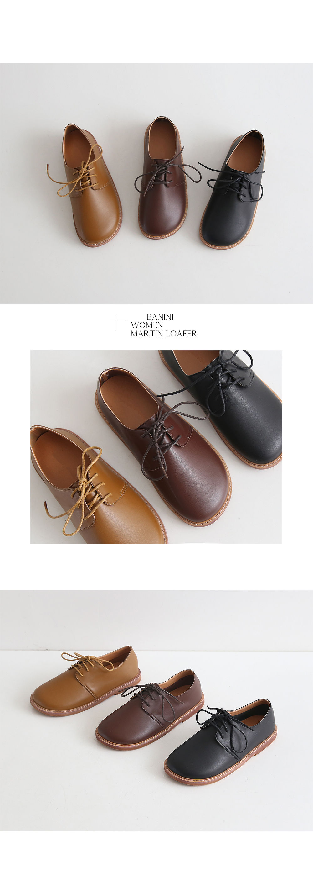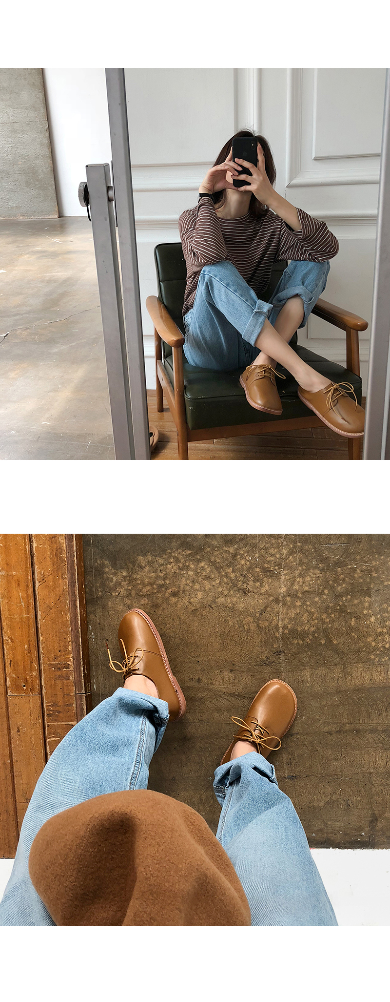 DETAILS - 소재 : 인조소가죽 - 컬러 : beige,brown,black - 피팅감 : 정사이즈 / 무게 : 보통인편 - 착화감 : 편해서 데일리 슈즈로 좋아요 - 모델피팅 : 235