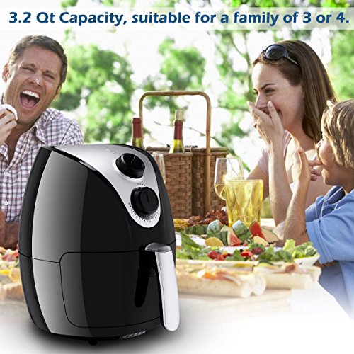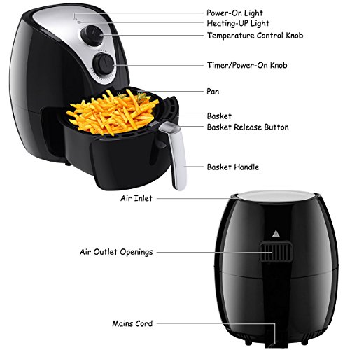 Description:If you are obsessed with fried food but still worried about that too much calorie will be ingested, our Costzon 1500W Electric Air Fryer is a nice option for you. Equipped with hot air circulation system, this air fryer can cook food in fried way as delicious as usual. You can cook numerous delicacies by adjusting the built-in temperature control and timer without much efforts, which is easy to handle and efficient. Non-Slip Feet on the bottom of this air fryer to keep stable.
