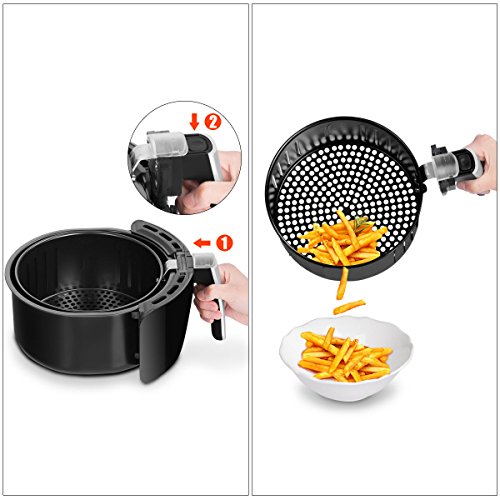 A Healthy Cooking Habit - Equipped with rapid hot air circulation system, this air fryer cooks food in a healthy way as delicious as usual! Great for traditional French fries and onion rings, cooks steak, roasted potatoes, vegetables and more. No oil smell, no splatter, no mess. This air fryer is perfect for frying, baking, grilling and roasting with little to no oil.