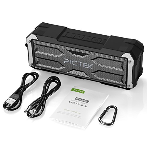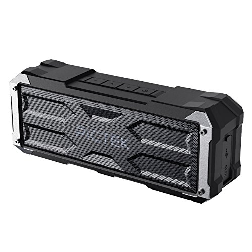 -. Feature : SOUND BEYOND SIZE: Don't let your eyes deceive you! This portable speaker delivers two 10W drivers and one passive radiator which provide full-spectrum audio with incredible bass effect and clarity at any listening level. Enjoy LIVE music anytime, anywhere you go! / 25HRS PLAY TIME: The rechargeable 4400 mAh lithium-ion battery delivers up to 25 hours of playtime, and charges with most USB power sources. Be prepared to be impressed by the power of this Pictek speaker! / Engineered To Travel: Don't leave your music behind. Enjoy wireless freedom with this little speaker. Weighing in at just 24.5ounce, it's small and light enough to tuck into your bag. It has a hook that lets you place it almost anywhere and provides a low center of gravity that makes it nearly impossible to tip over. / IPX4 Waterproof Rating: What could be more fun than bring a waterproof speaker to a party at the beach? Waterproof rated IPX4 for protection against rainfall and splashing. It can protect your speaker from water jets at any direction. / Hear What You Want: Advanced Bluetooth 4.0 technology features faster & stable signal transmission, clearer sound quality and lower power consumption. You can enjoy clear, natural sound from this durable speaker within 33ft wirelessly.