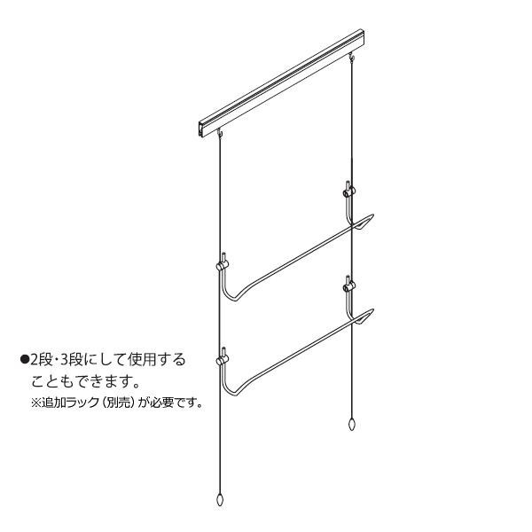 | ピクチャーレールのフック型アタッチメントに掛けて使用するマルチラックです。帽子やネクタイ、ふきんやタオルなど様々な物を吊ることができます。シンプルなデザインなので、どんなお部屋にもマッチし、店舗でもご使用いただけます。(ピクチャーレール、フック型アタッチメントは別売です。) |