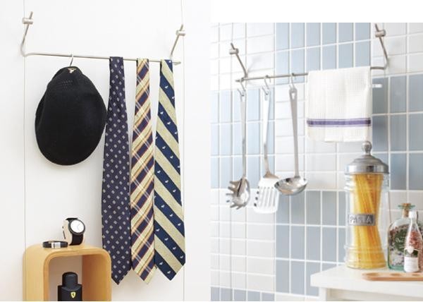 | リビングでもキッチンでも。様々な物が吊れるマルチラック。 |