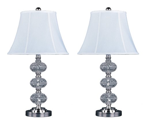 [Product Information]- 2 piece table lamp set with a crystal glass design and hand crafted white shades; 14-Inch diameter, 26-1/4-Inch tall