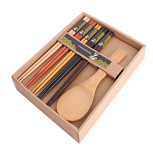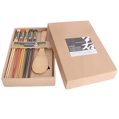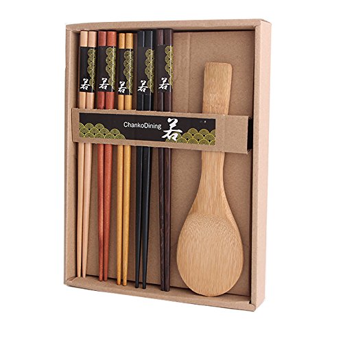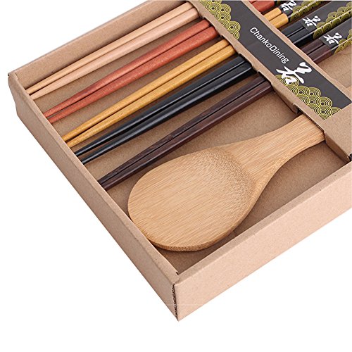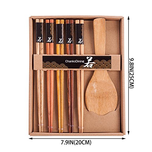 ChankoDining Japanese Natural Wood Chopstick and Spoon Set Reusable Classic Chopsticks 5 Pairs