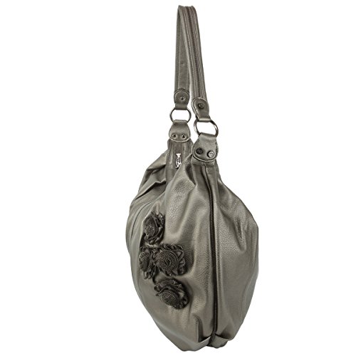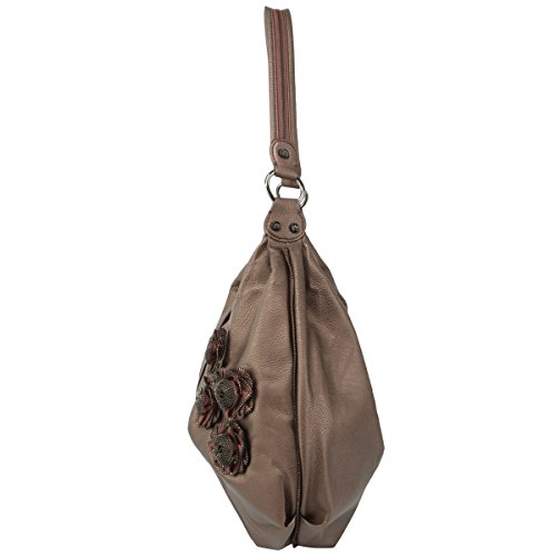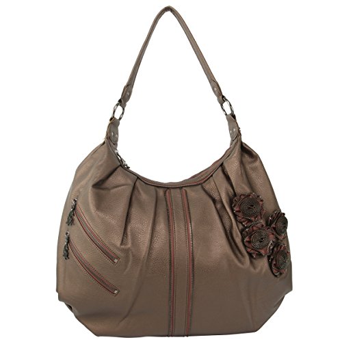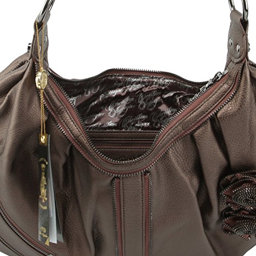 -. Brand : Christian Audigier -. Department : womens -. Feature : Top zipper closure, Single handle with 18" Drop / Diagonal zippered front pockets with logo pull, Rose detailing / Back zipper pocket with logo pull, includes dustbag, zipper design / Fully lined logo interior with zip and slip pockets / Bag: 24 x 15.5 x 7 (WxHxD) -. Model : CACZZZIG7910 -. ProductGroup : Shoes -. ProductTypeName : HANDBAG -. Size : One Size -. Title : Christian Audigier Zee Zee Top Ziggy Hobo Bag