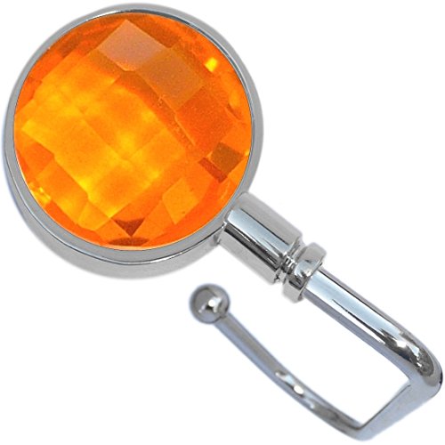 Product Description Brilliant Orange Faceted Purse Hanger and carrying pouch too. Our beautiful and strong handbag hooks are a great way to keep your purse off the floor fashionably. You can keep your purse up by the table instead of placing it on the dirty floor. 0