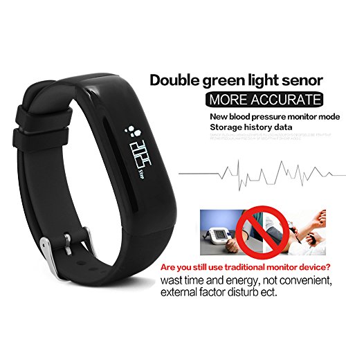 -. Feature : ★ Health Assistant: Track your workouts, steps, distance, calories, blood pressure, heart rate and your sleep quality metrics. Know your physical condition, this fitness tracker knows you better than you / ★ Practical functions: SMS reminder, screen switching, call reminder, vibration clock, sedentary alarm, cell phone inquiries. Better connect your phone so you no longer miss important time / ★ health monitoring: high-performance CPU, blood pressure monitoring, 24-hour dynamic heart rate detection, built-in dynamic heart rate chip. Knowing yourself accurately is better in real time / ★ Compatibility: Smart Bracelet Data Motion Sync Apple and Android Compatibility: Must be IOS 7.1 or above or Android 4.3 or above. / ★ Warranty and Support: 1 year warranty and lifetime technical support.