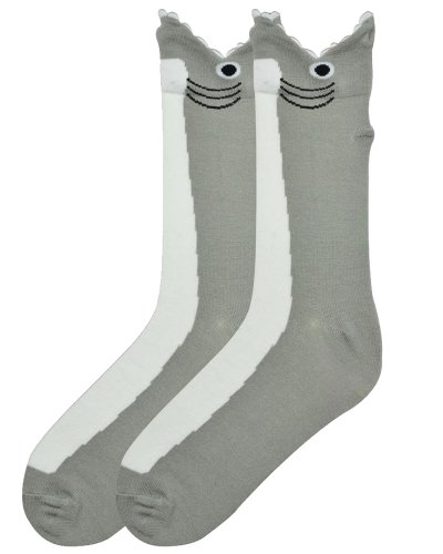 K. Bell Men's Acrylic Wide Mouth Shark Crew Socks (Grey, Size 10-13)