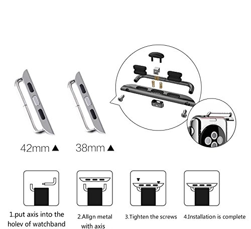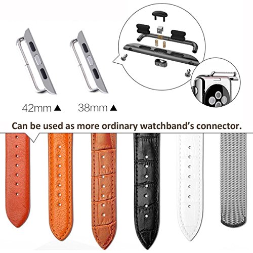 -. Binding : Wireless Phone Accessory -. Brand : Safrone -. Feature : High quality stainless steel connection adapter for Apple Watch 38mm 42mm / The design of the precise, accurate cutting hole, perfect for your apple watch / Easily replace the existing Leather band to your apple watch / The combination of strong & compact like the original strap. / Easy to install/remove. (Package contains: adapters x2) -. Label : Safrone -. Manufacturer : Safrone -. PackageQuantity : 1 -. ProductGroup : Wireless -. ProductTypeName : WIRELESS_ACCESSORY -. Publisher : Safrone -. Studio : Safrone -. Title : Safrone Stainless Steel Apple Watch Band Connection Connector Adapter 38mm 42mm for Apple Watch & Sport & Edition
