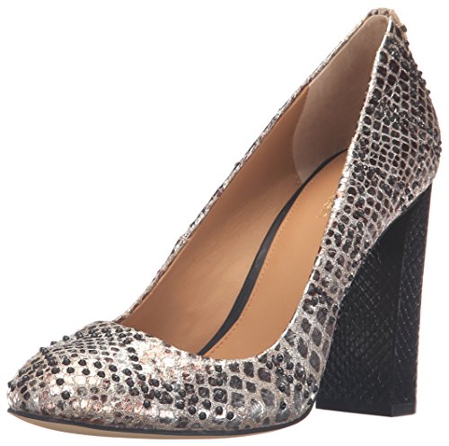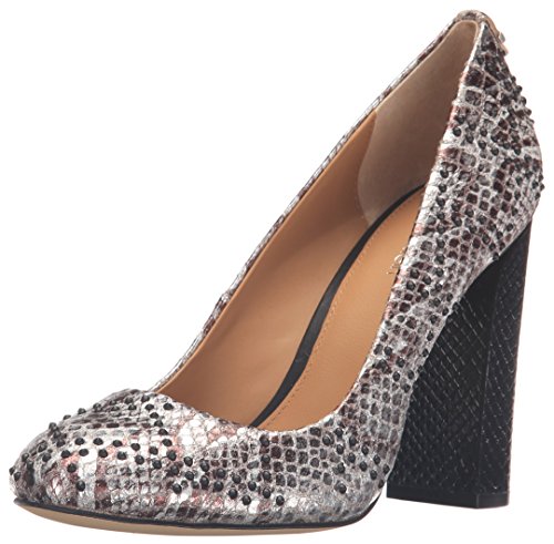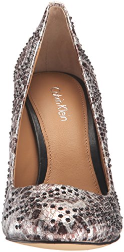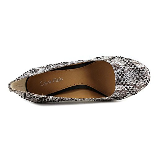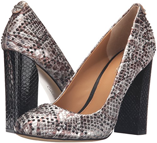 Product DescriptionCalvin klein’s junie is your go to round toe slip on fashion pump with its architectural heel and tonal studs laid out in a sophisticated geometric design.0
