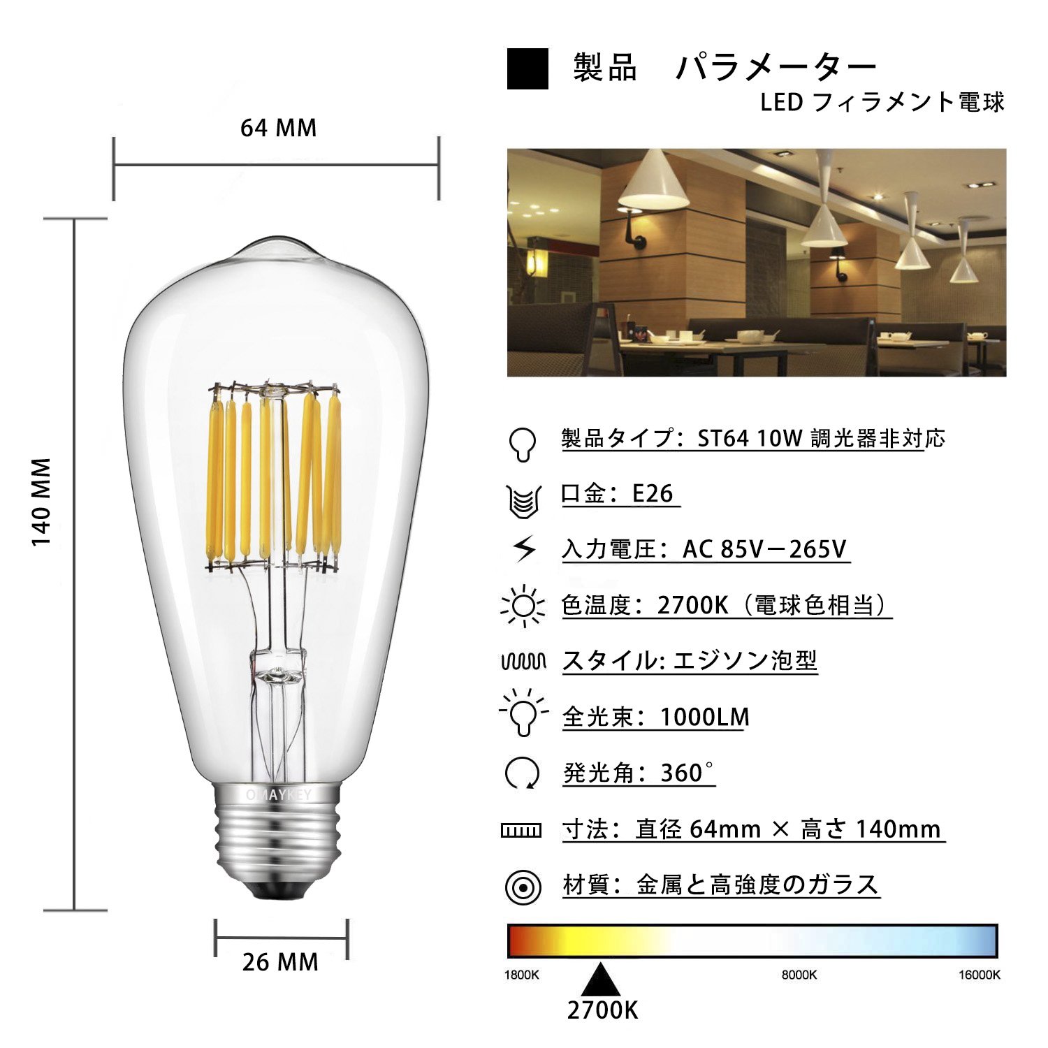 OMAYKEY LED bulb filament 10W (equivalent to incandescent light bulb 100W type) bulb color E26 ST64 retro edison bulb clear glass general bulb omnidirectional type dimmer not included 1 piece