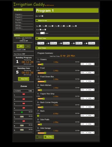 The Irrigation Caddy ( IC ) device is an ethernet based irrigation control system. The system allows the user to control and schedule an irrigation system from any computer with a web browser. No special software or clients are required, just a Web Browser on a computer. Installation is simple. Connect the IC to your network using an ethernet cable, and the IC will automatically obtain a DHCP IP address from ( typically ) your DSL/Cable router. Then connect the valve wires to the IC and the IC is ready to run. Setting the schedules is also very simple. The IC can be accessed using your Web Browser from your home computer. The interface is clear and user friendly. Simply tell it what days it should water, and at what times, and the IC will save the information. The Irrigation Caddy supports "Even / Odd", "Every X Days", and "Days of the Week" scheduling. The information is kept on the IC, even if the power is turned off. Technical Specs:Feature
