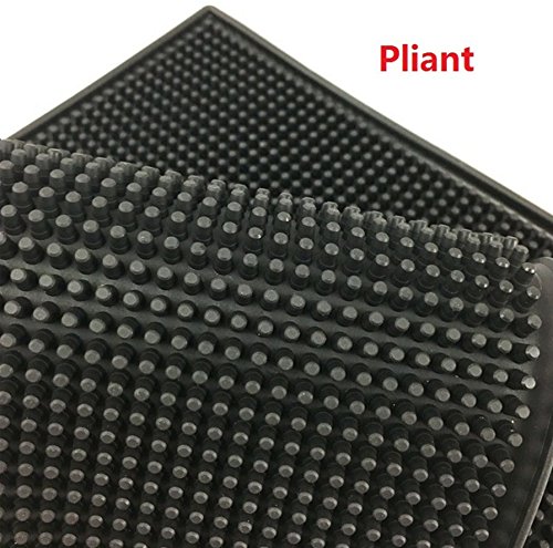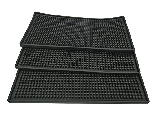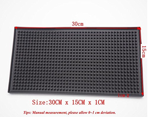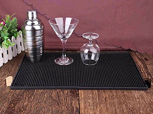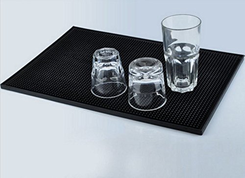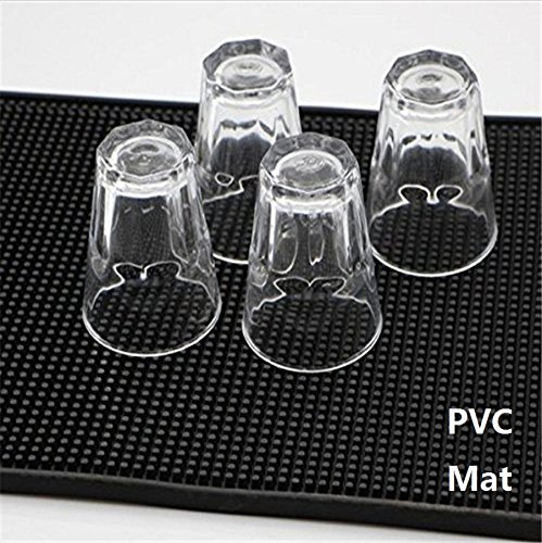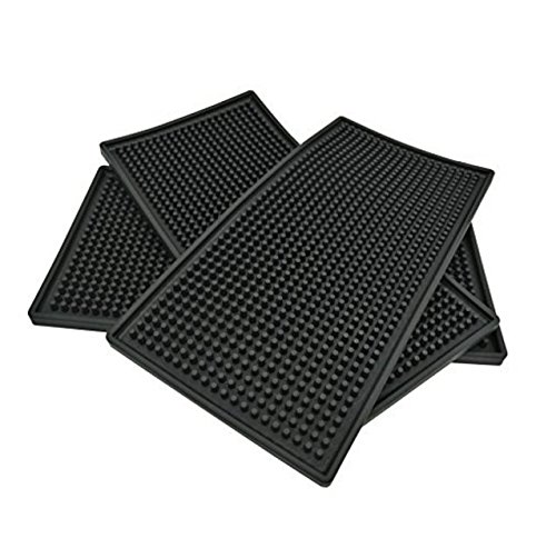 -. Feature : Made from thermoplastic rubber.Crafted from 100% PVC material, is one of the safest materials in contact with tableware, glassware; They are safe, odourless and tastless; ECO-Friendly! / Increase sanitation and safety at your bar with this 6" x 12" rugged black bar rail mat!Made of extremely durable, solid, one-piece thermoplastic rubber, this mat provides optimal drainage and friction. / Extremely easy to wash, simply place the mat over the sink and let liquid drain out. Rinse with warm water. Hand washing is recommended to keep this mat in pristine shape and condition. / An indented square on both ends of the bar mat serves well for placing a beer glass.The recessed surface provides more support to keep the glass from being easily tipped over.This mat also helps absorb accidental spills or splashes. / Rubber nubs help keep glassware in place, allows air flow underneath wet glasses for quick and efficient air drying, and it provides a non-slip surface.The black color will be a perfect match for any surface in your pub or bar.