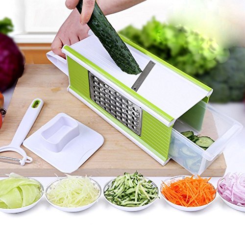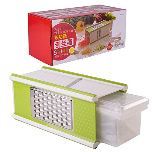 Multifunctional 5 in 1 Grater Hand-held Mandoline Slicer Kitchen Shredded Device Shredder Planer with A Tray Peeler Handle Safety Holder for Vegetables by Ansee