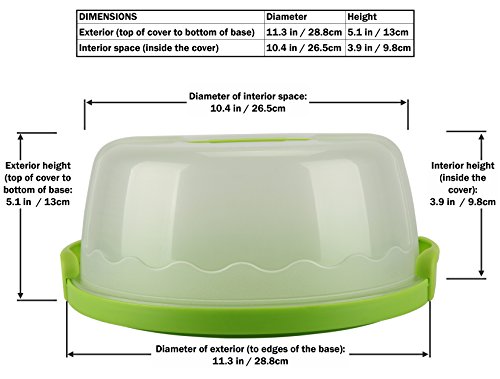 HelloCupcake Portable Cake & Cupcake Carrier / Storage Container - 11.25" Diameter, Translucent Dome - Great for Transporting Cakes, Cupcakes, Cookies, Pies, or Other Desserts (Green)