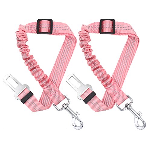 -. Binding : Misc. -. Brand : Rocy -. Color : Black -. Feature : Flexible nylon fabric bungee with buffer damping design could protect your dog from sudden brake and turns / The material of the seat belt is durable nylon fabric / Seat belt clip are designed to latch into your car with ease; Please check your buckle's size and compatibility before purchasing, the easy snap-on clasp is 2.1 cm width / The length of the dog safety belt can adjust from 70 to 90 cm, allows your dog to sit, stand or lie down comfortably in a car / Luminous reflective threading keeps your pet both safe and visible at night -. Label : Rocy -. Manufacturer : Rocy -. PackageQuantity : 1 -. ProductGroup : Pet Products -. ProductTypeName : PET_SUPPLIES -. Publisher : Rocy -. Studio : Rocy -. Title : Rocy 2 Packs Adjustable Nylon Dog Cat Car Seat Belt Vehicle Harnesses with Elastic Bungee Buffer