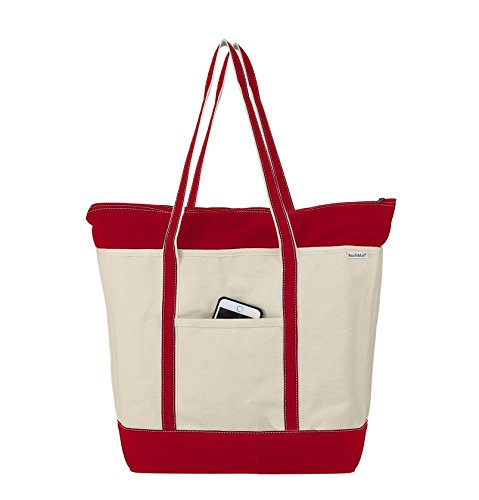 -. Feature : EXTRA LARGE & MEDIUM SIZE OPTIONS : Durable, Red, sturdy, heavy duty 18 oz canvas material with storage compartments inside. Double-layer base. Handles tested to hold up to 200 pounds.This quality tote is designed to withstands tough use and to last for years! This premium natural canvas has tighter weave construction making it more durable and sturdier compared to most canvas bags. Must see to believe it! / This tote will not rip off! The high handle drop straps are stitched to the base, Double stitched top hem, and piping stitching around exterior edges for added strength & durability. Plus extension to bottom for added load capacity. Neatly-stitched seams give it a clean look. This bag will last for years!