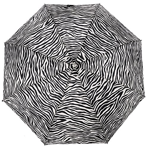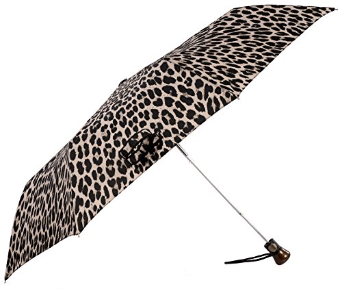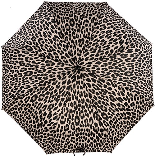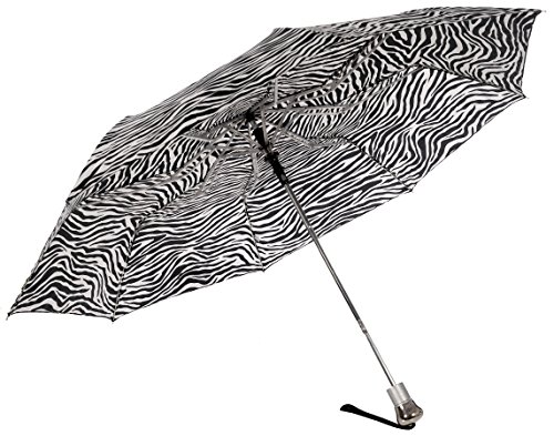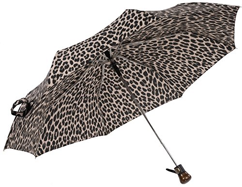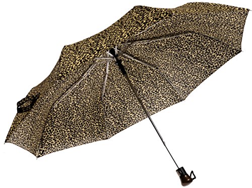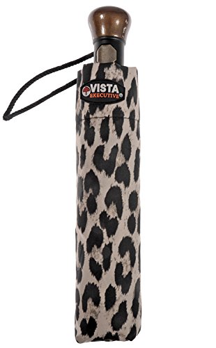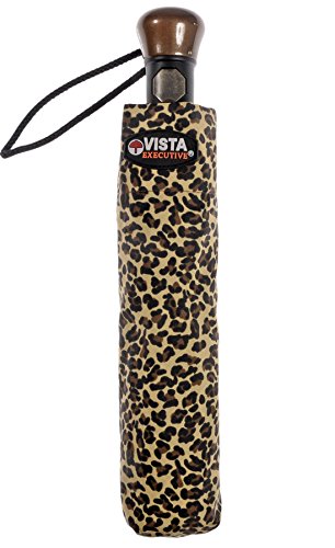 -. Brand : Vista Umbrellas -. Department : womens -. Feature : All-over animal print / Easy to open and close with automatic folding mechanism / Wood handle with open button / Velcro strap to close umbrella and wrist strap for easy carrying / Size: 22" x 8 ribs, Length: 12" -. ProductGroup : Apparel -. ProductTypeName : LAGE -. Title : Vista Executive Animal Print Fashion Umbrella