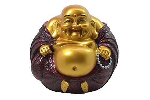 Feng Shui Laughing Buddha Red/gold Resin Happy health money Buddha Statue, Laughing Buddha Statue