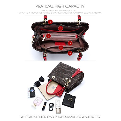 -. Feature : • Dimension Capacity: 9.1"H x 11.8"L x 5.1"W with 5.5" handle on the top, which fit in a 9.7" IPAD + one day clothes + books + A4 folder + cup + wallet + umbrella + phone + MP3 and other small items. / • Material: Made of high quality PVC material, durable, waterproof, and corrosion. The thick Fabric lining significantly resist wear and well protect your valuables. Also, the metal accessories (chain, hook) have been finely plated to prevent rust. / • Application: 4 compartments, two open compartments with top zipper closure, front and rear with magnetic closures. Internal slip pockets for your cell phone, power bank. / • Carry or Shoulder: The removable and adjustable shoulder strap for the most comfortable length can be carried cross body, over the shoulder or held by hand and elbow, making it a perfect match for everything from dresses to jeans. / • Design: Elegant high-end design with a simple tassel for decoration goes well with any outfit in any occasions like work, business, dating, Daily, travel, school, etc.