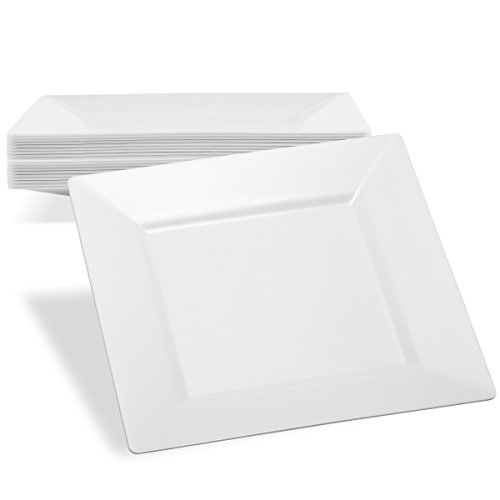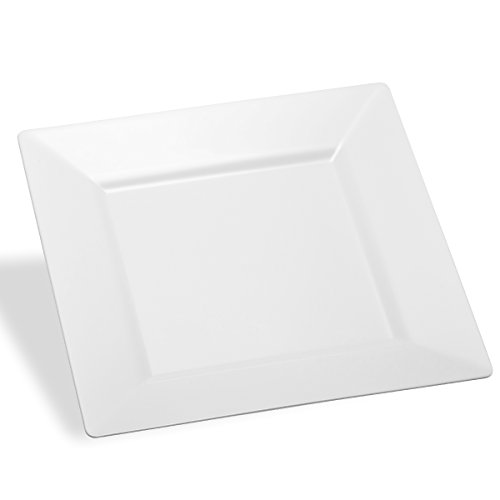 - Square dinner plates 11-inch white plastic plates are perfect for steak cuts, fish menu, salads, main course, pasta dishes, buffet bar etc.