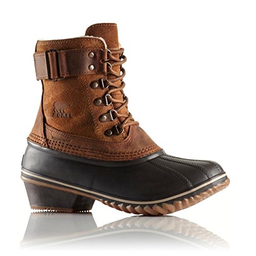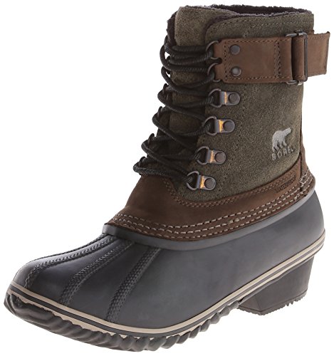 These slim Sorel boots are made from oiled suede and detailed with a waterproof rubber shell. Lace-up closure. Adjustable buckle strap at shaft. Low-pile fleece lining. Zigzag rubber sole.Feature