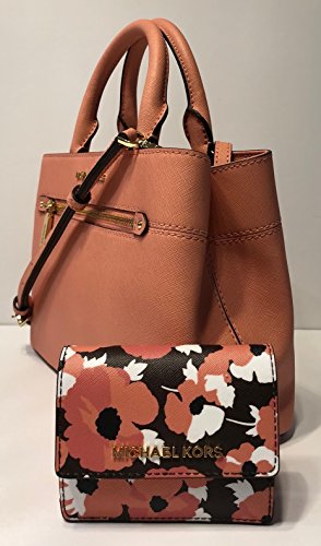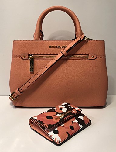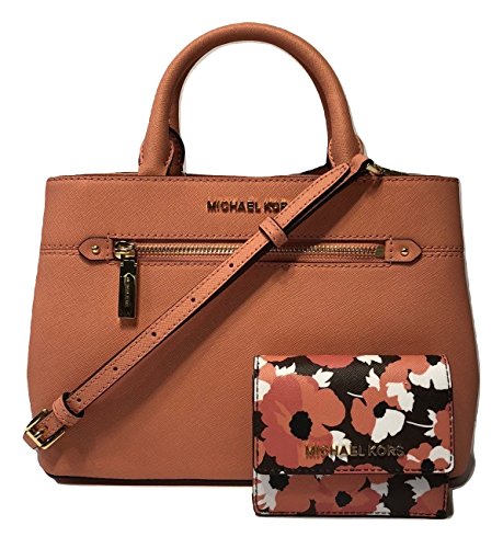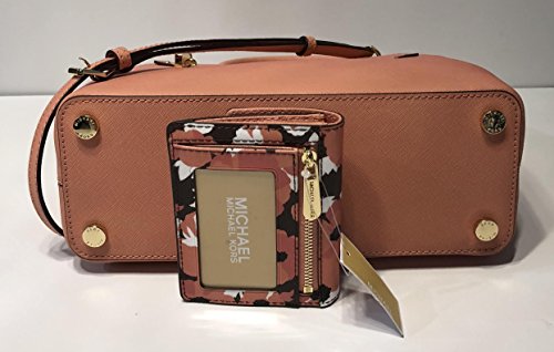 Michael Kors MICHAEL Michael Kors Hailee XS Satchel bundled with Jet Set Travel Card Case ID Key Holder Wallet (Peach/Floral)
