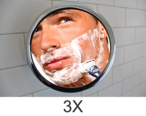 Fog Free 3X Shower Mirror and Makeup Mirror With Locking Suction Mount and Ball Joint Swivel(3X)