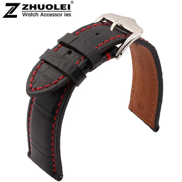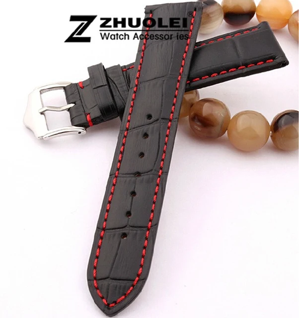 | [해외] Highquality 18 미리메터 19 미리메터 20 미리메터 21 미리메터 22 미리메터 23 미리메터 24 미리메터 새로운 블랙 정품 가죽 손목 시계 시계 스트랩 팔찌 남성 레드 스티치 |