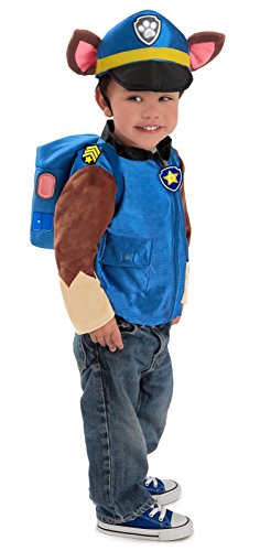 Paw Patrol Chase costume jacket, functional costume backpack, and hat with perky attached ears