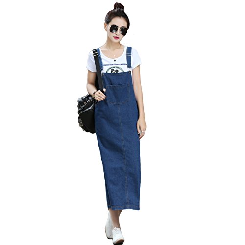 -. Title : Women's Slim Fit Skinny Casual Long Suspender Skirt Denim H-line Overall Dress