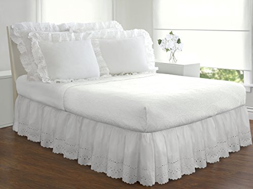 Title : Eyelet Ruffled Bedskirt - Ruffled Bedding with Gathered Styling -14" Drop, Twin, White